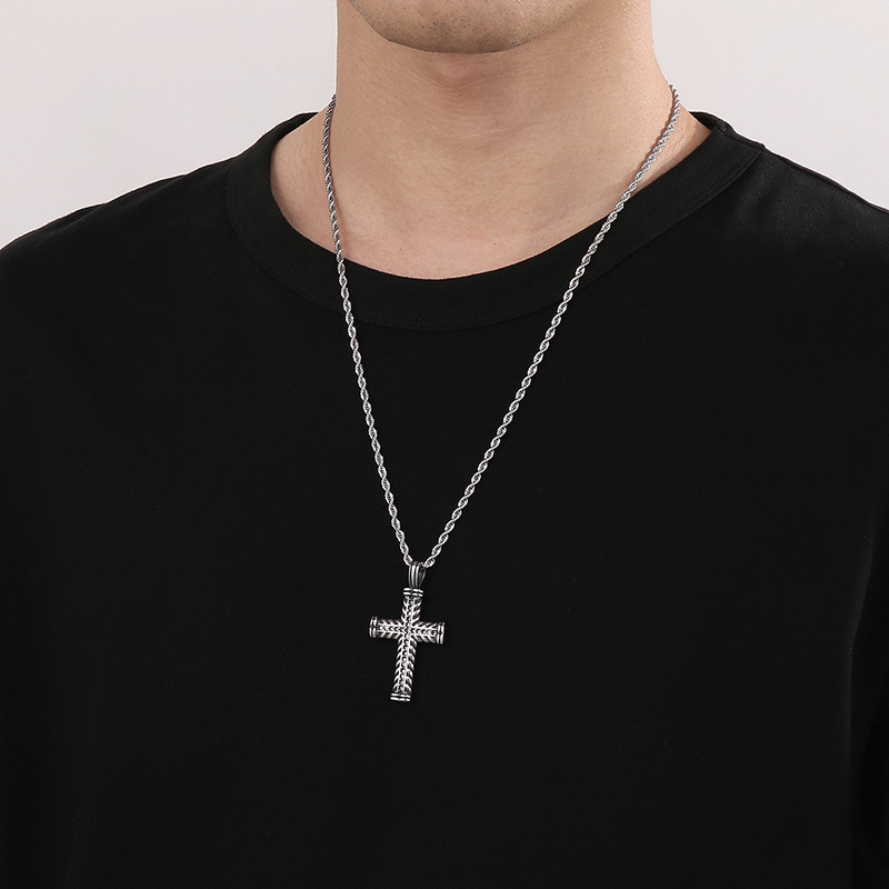 Kalen Hip Hop Viking Zircon Cross Gold Plated Stainless Steel Pendant Necklace for Men Women
