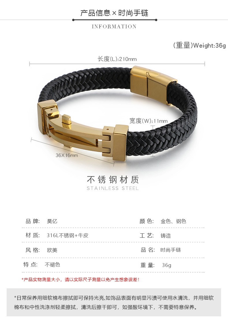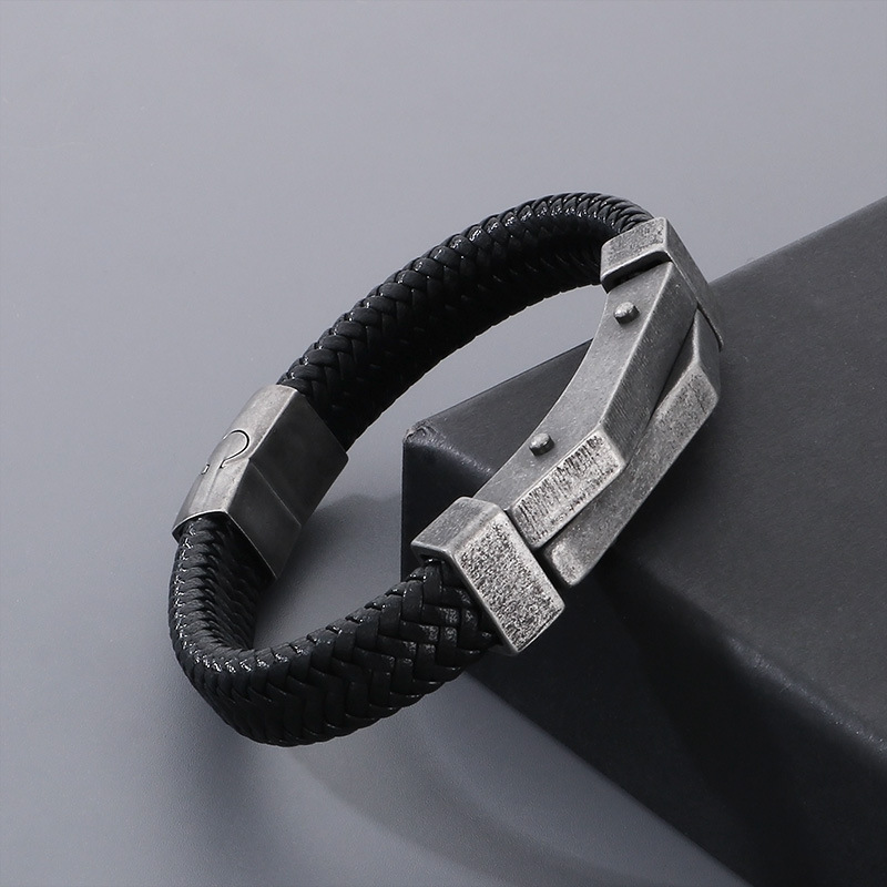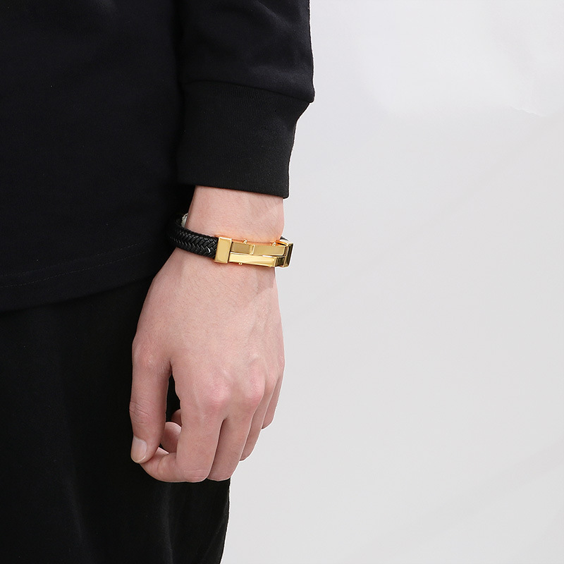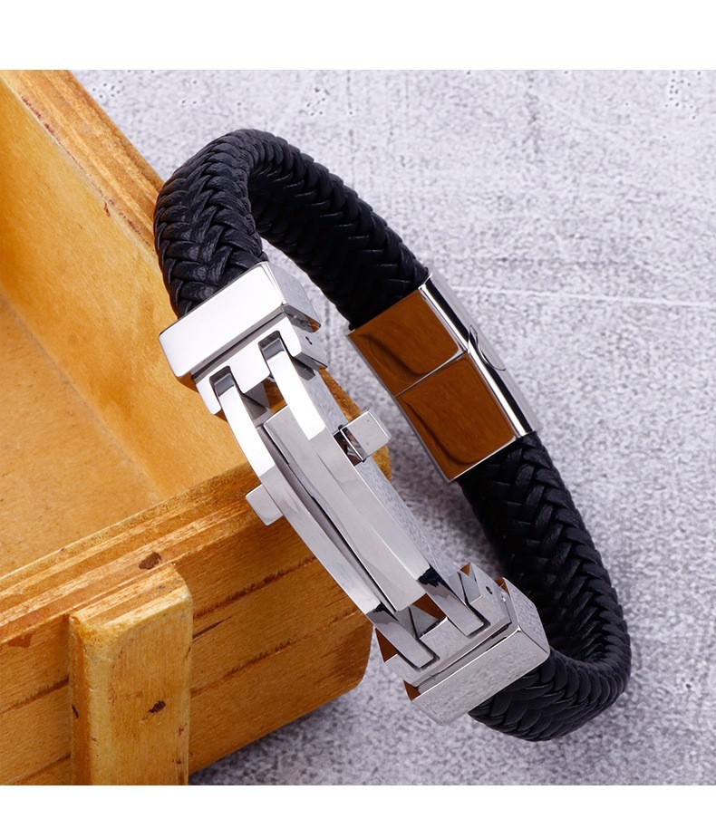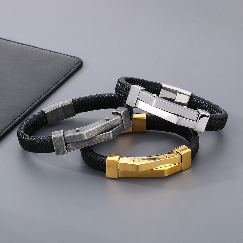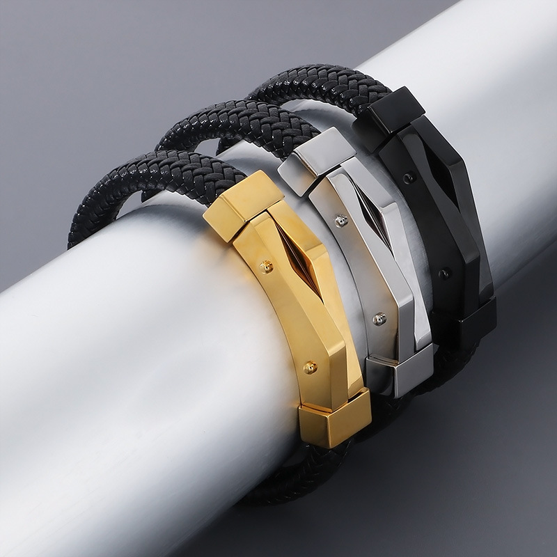 KALEN 12mm Cowhide Leather Stainless Steel Bracelet for Men - kalen
