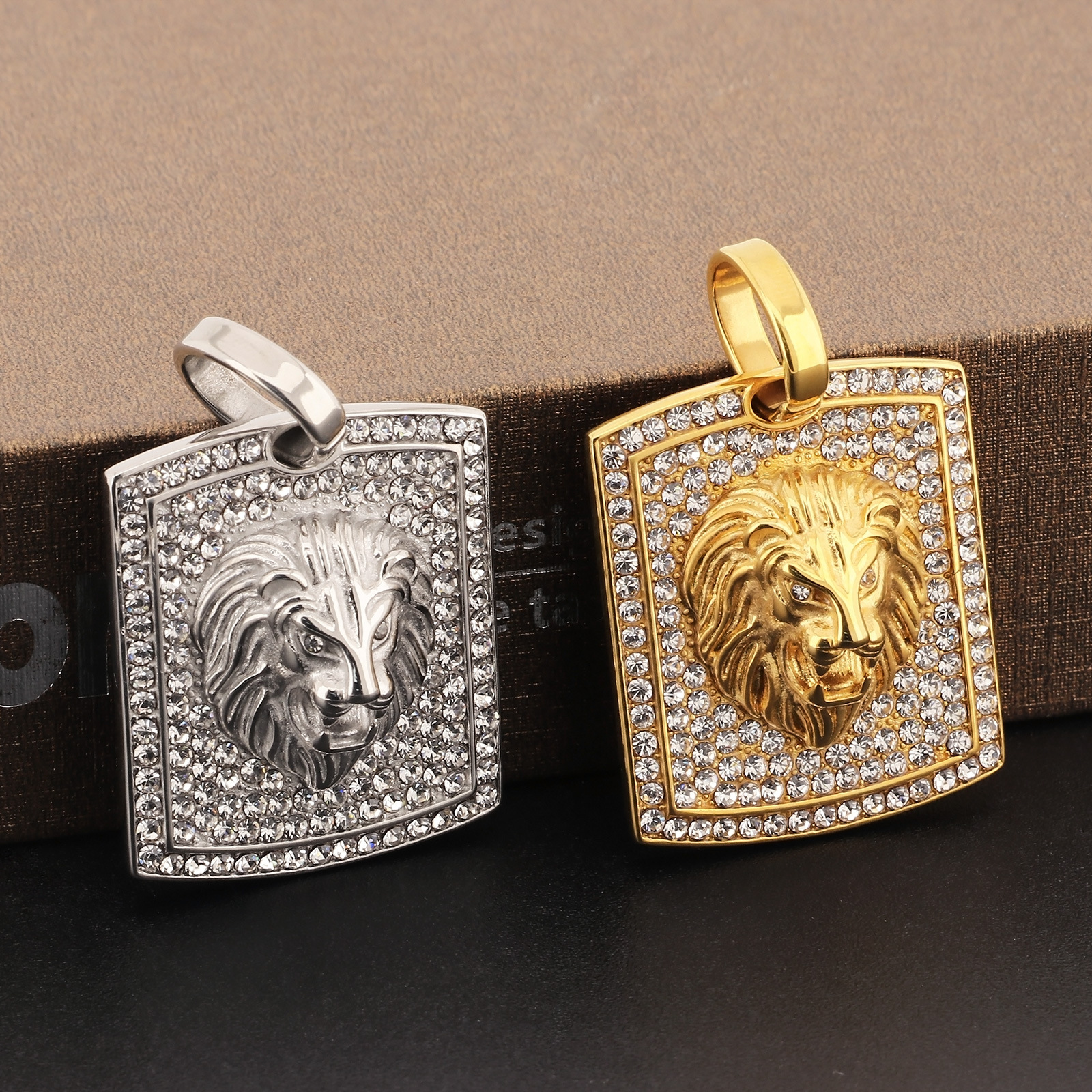 Kalen Hip Hop Lion Gold Plated Stainless Steel Tag Pendant Necklace for Men Women