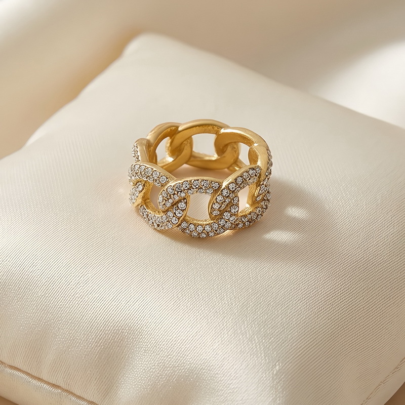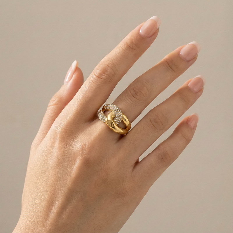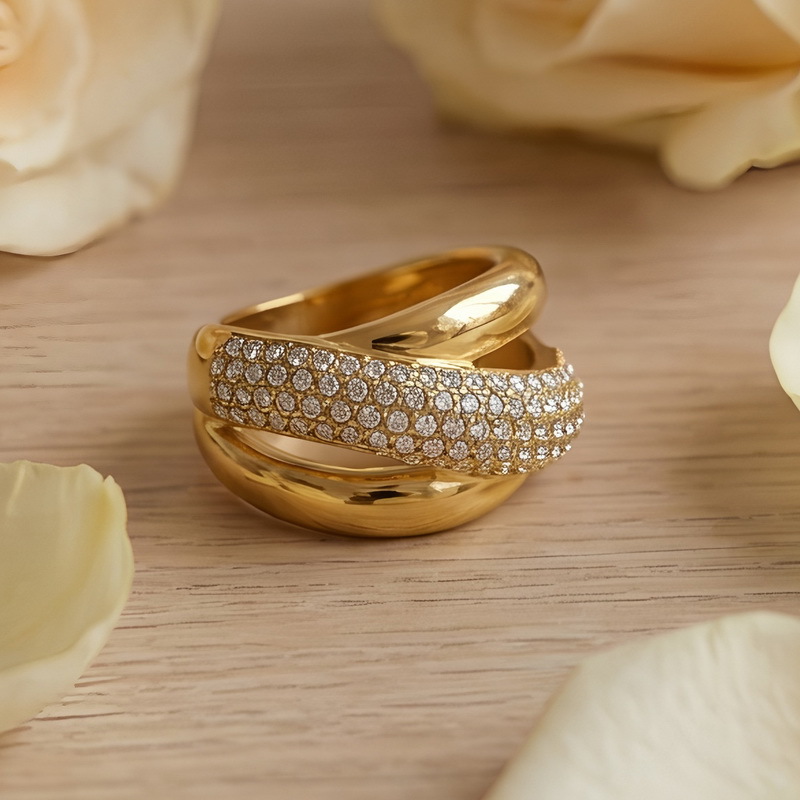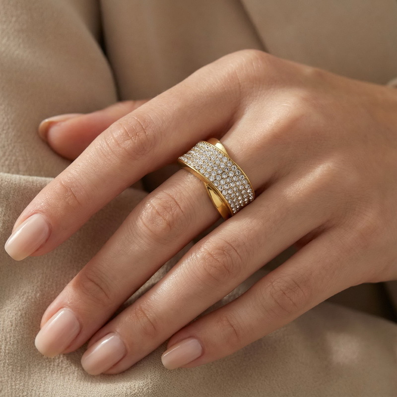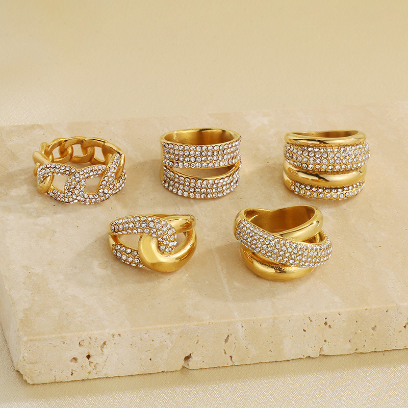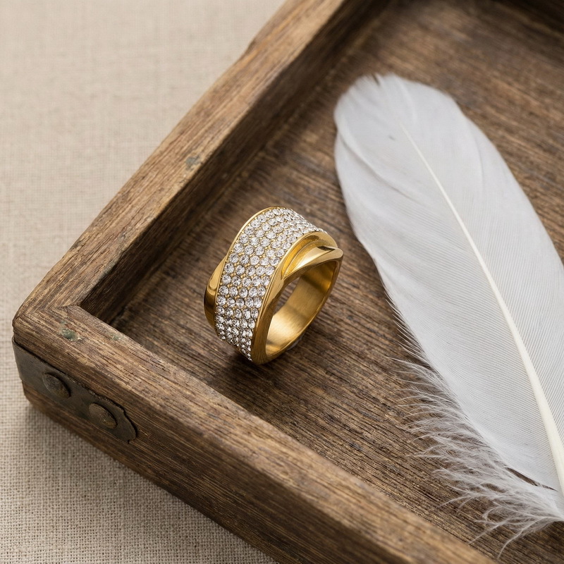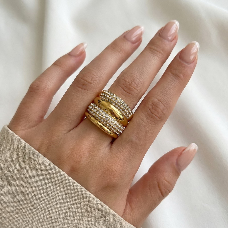 Wholesale Stainless Steel Wide Crystal Geometric Rings