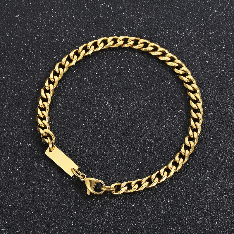 5mm Polished 6-Side Cut Curb Cuban Chain Blank ID Bracelet Necklace with Lobster Clap