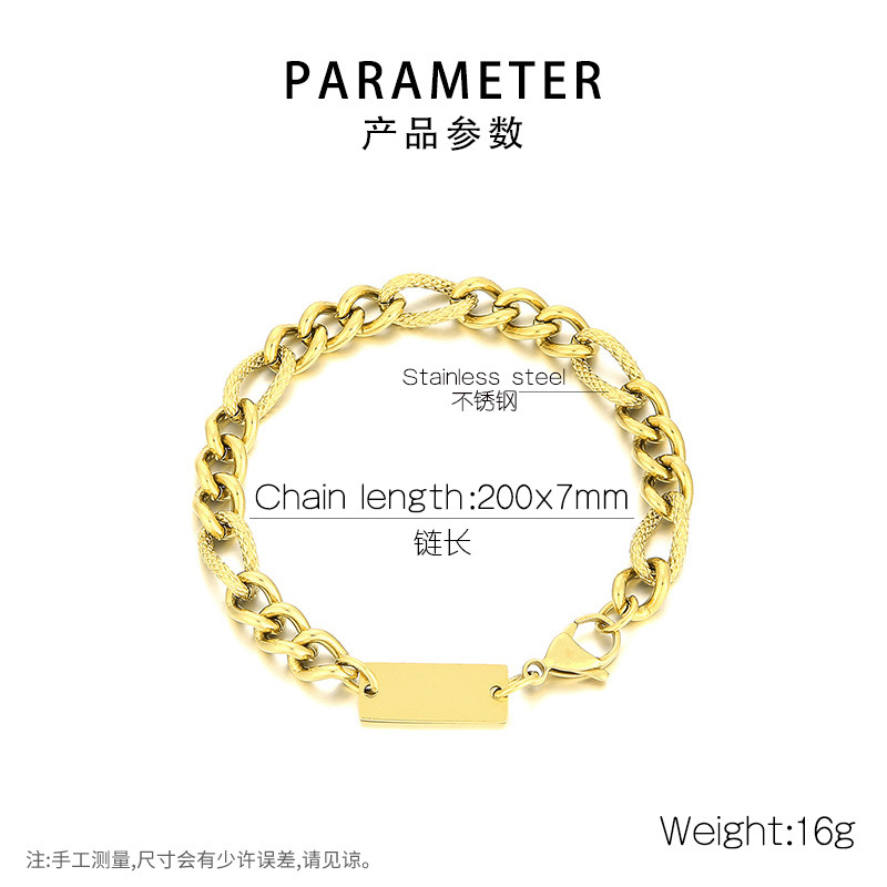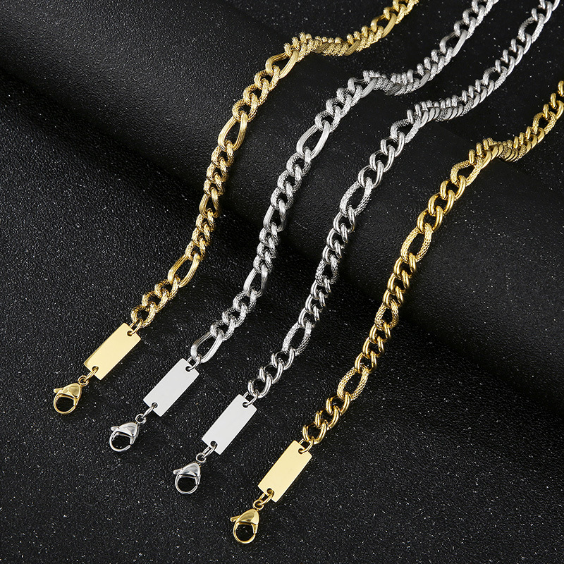 7mm Cuban Link Chain Blank ID Fiago Bracelet Necklace With Lobster Clap