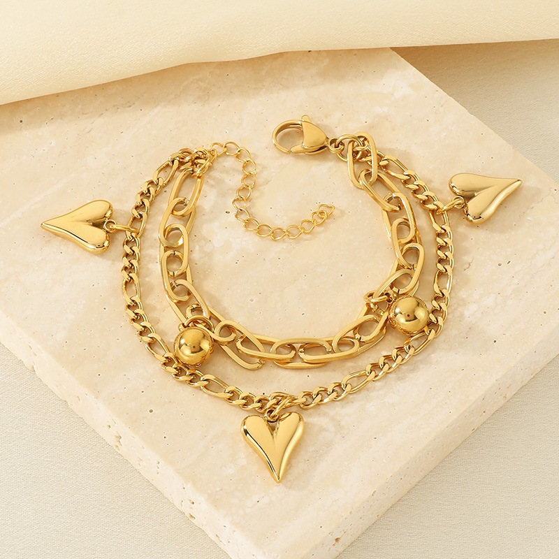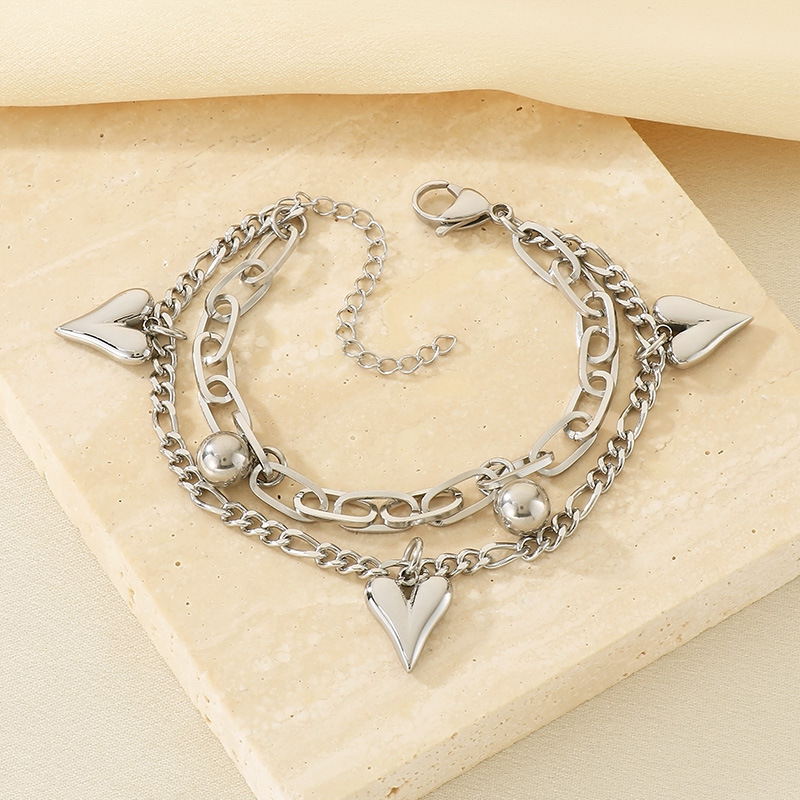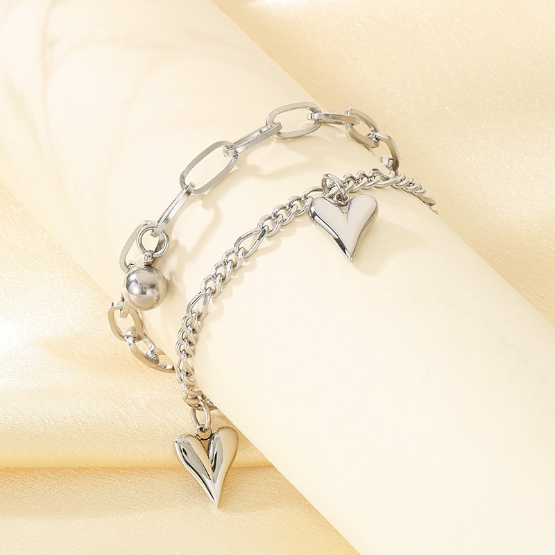 Wholesale Stainless Steel Double Layer Heart Charm Chain Bracelet