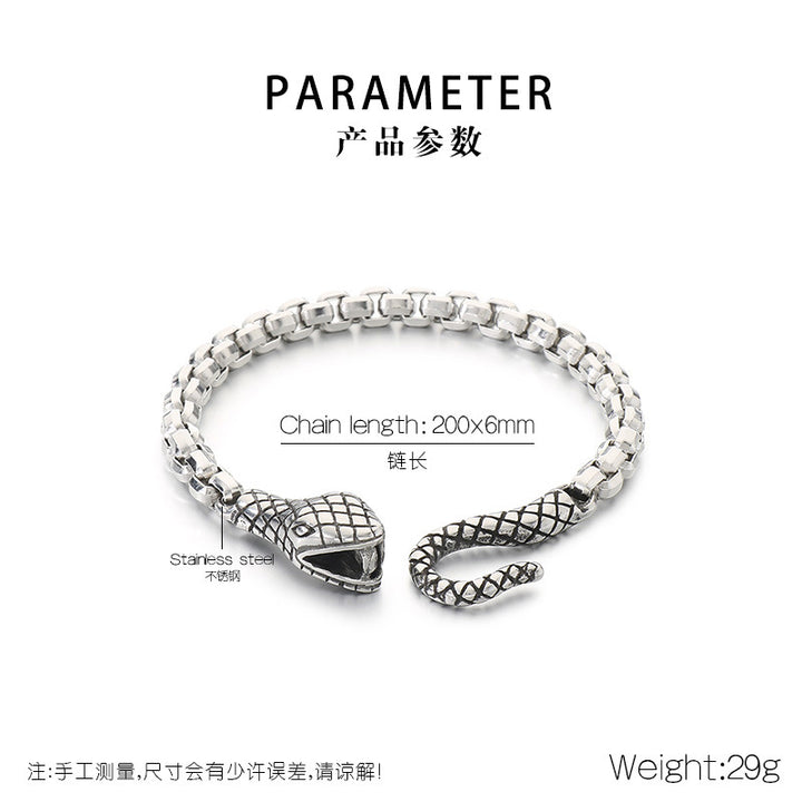 Multi-Color Stainless Steel Snake Head Chain Bracelet