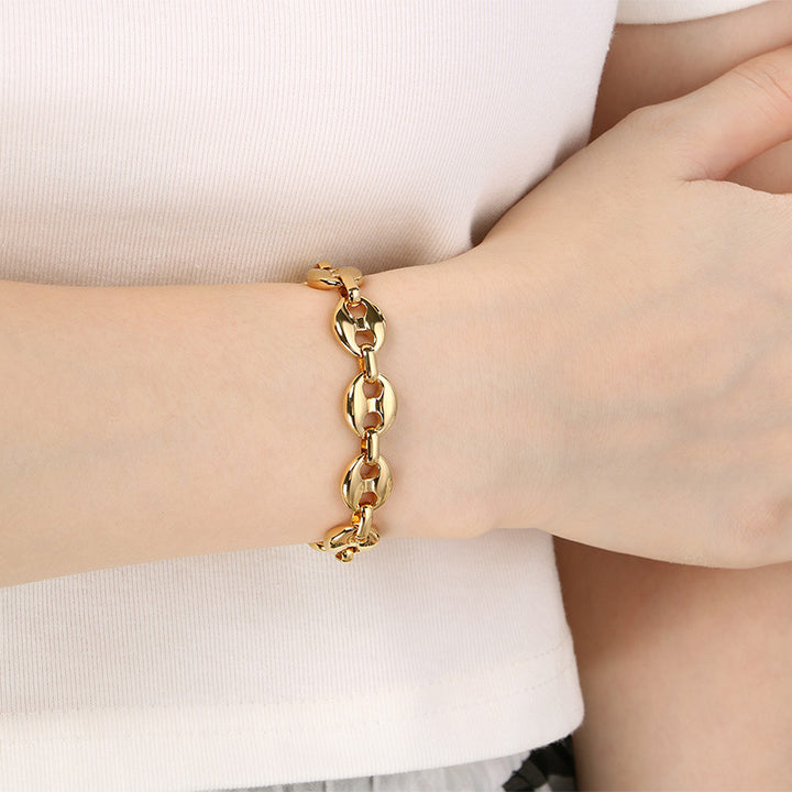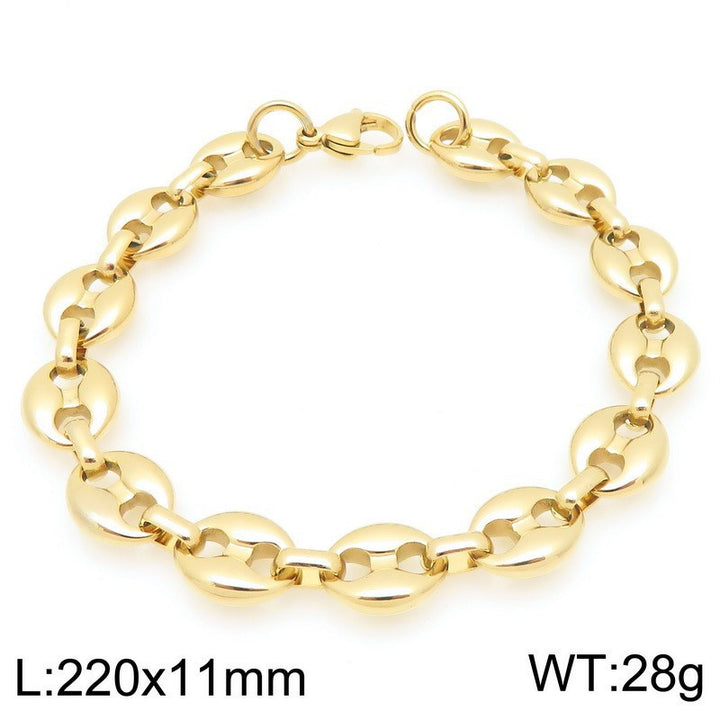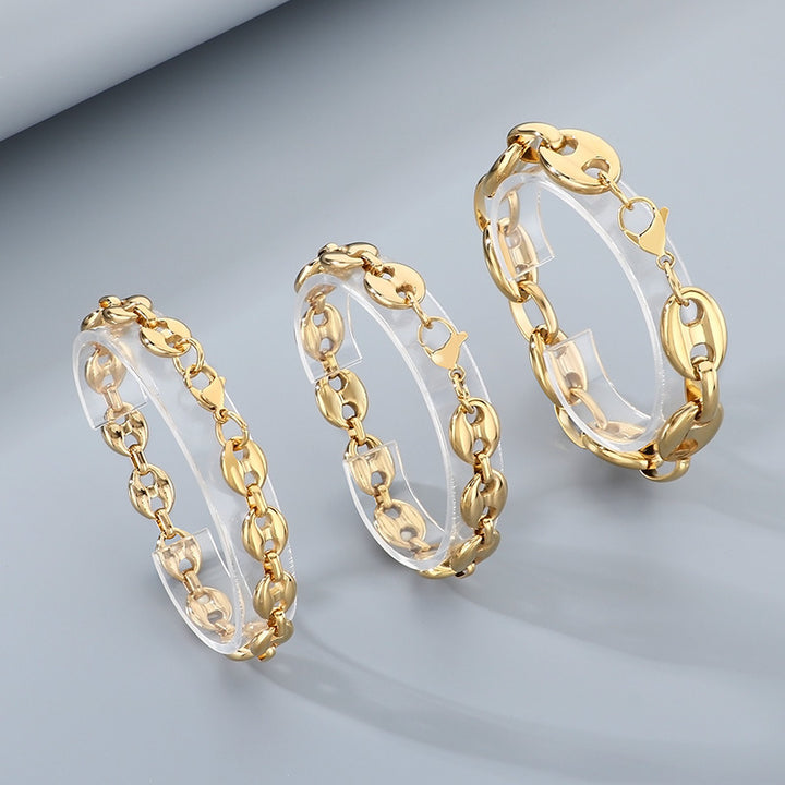 Hip Hop Gold Stainless Steel Pig Nose Chain Bracelet