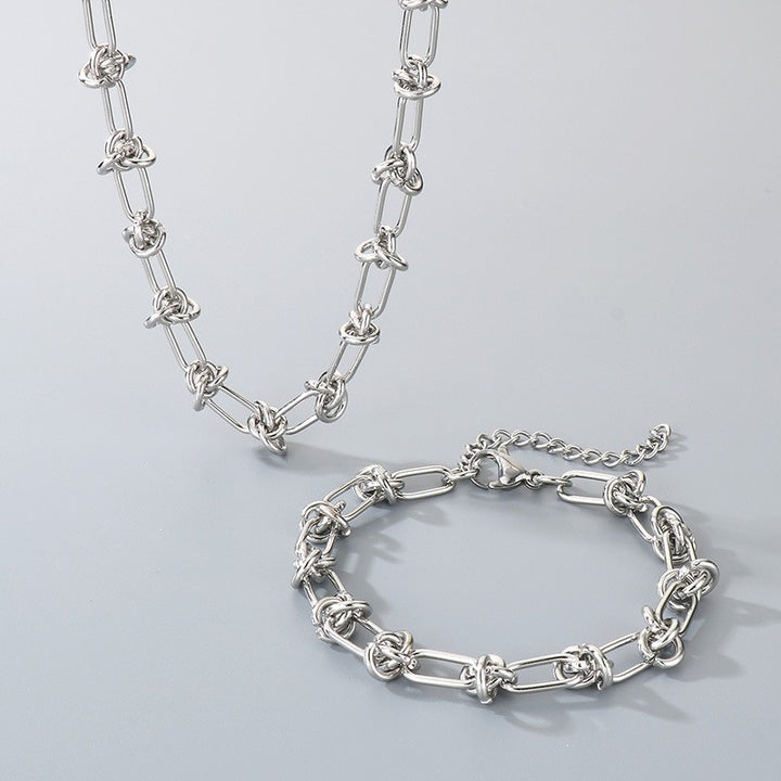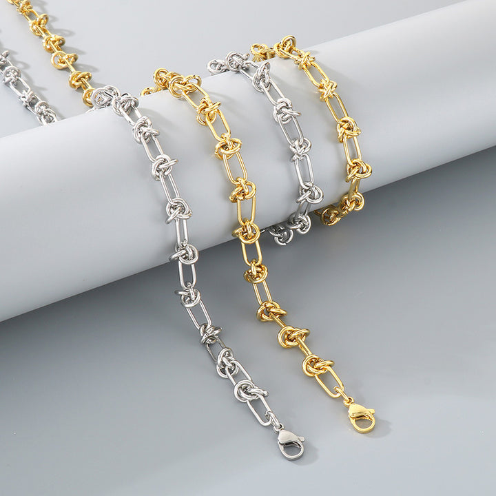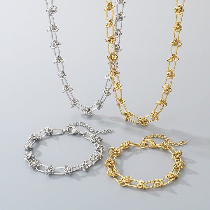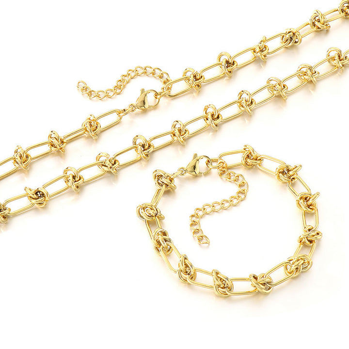 18K Gold Knotted Chain Necklace & Bracelet Set