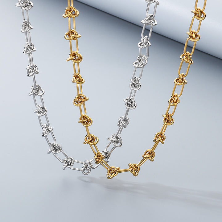 Wholesale Stainless Steel Knot 18K lock Chain Necklace in Gold & Steel