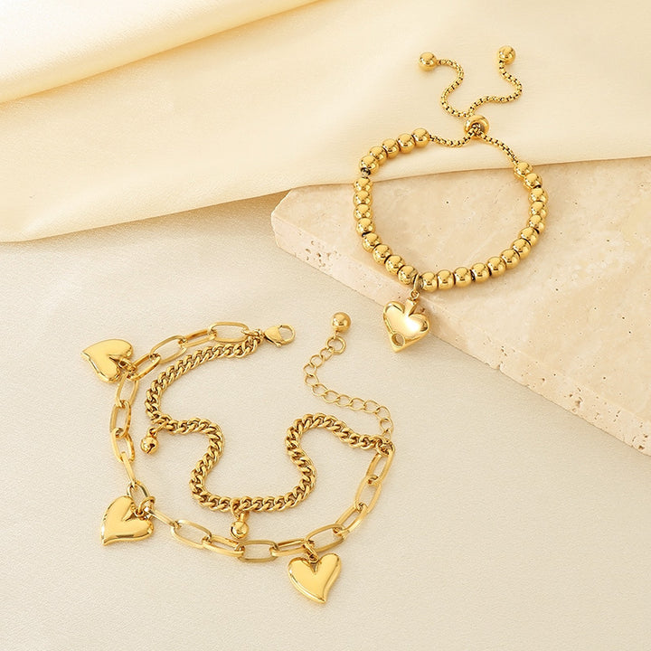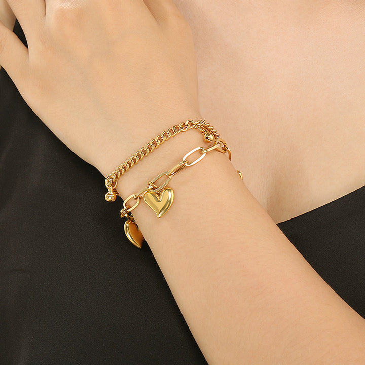 Stainless Steel Multi-layer Heart Charm Bracelet
