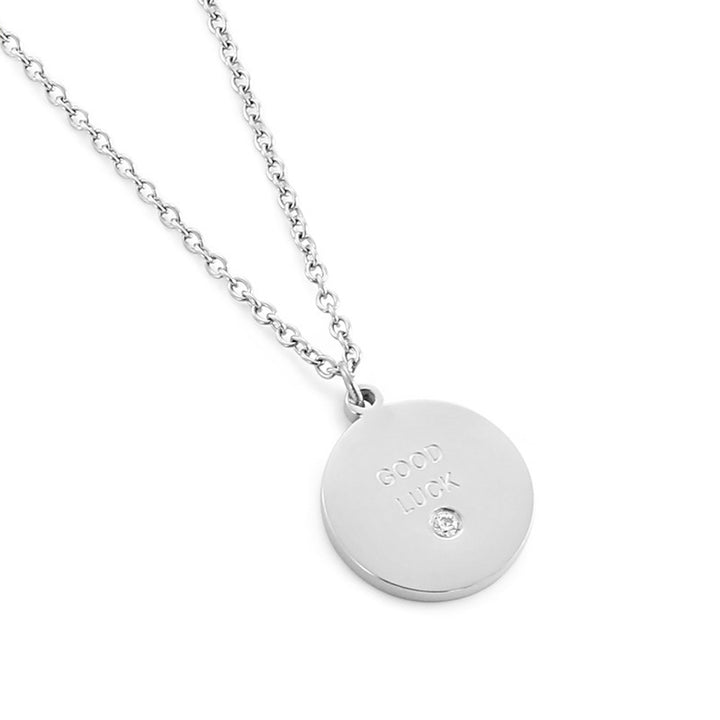 Stainless Steel CZ Round Pendant Necklace