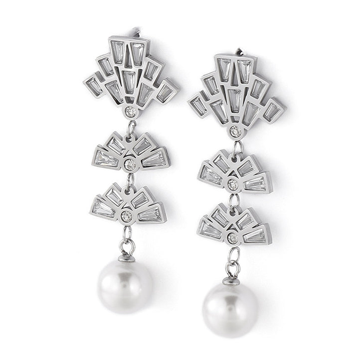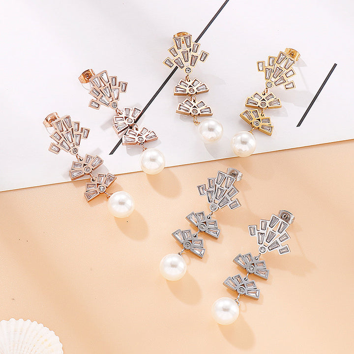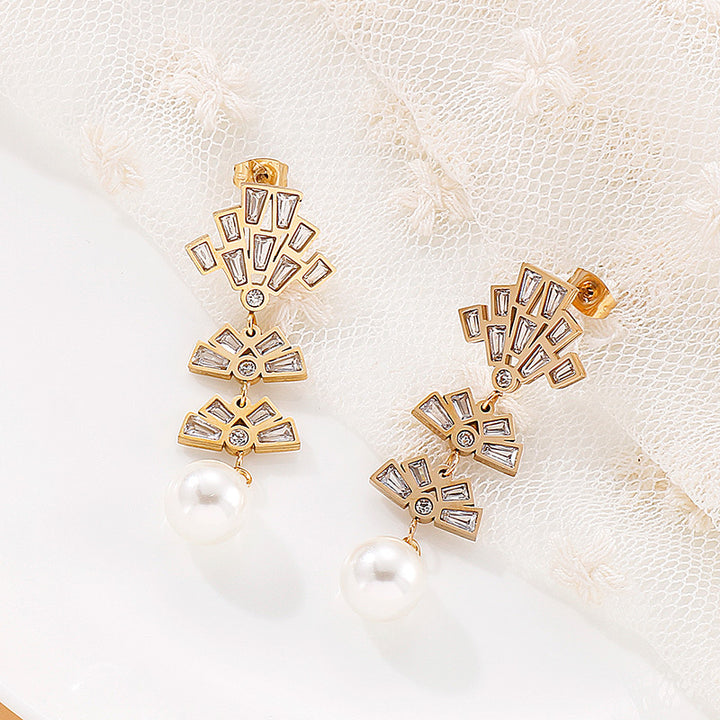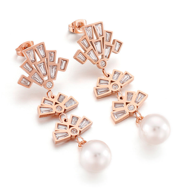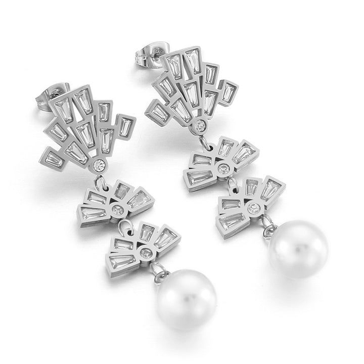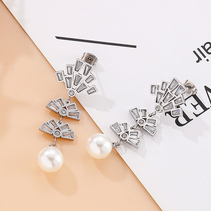 Wholesale Kalen Fan Design Pearl Drop Stud Earrings with Zircon